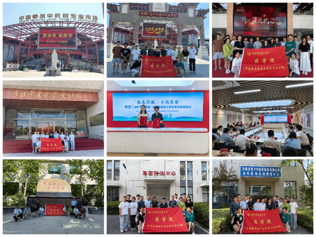 踏入中国·亳州中药材专业市场,千余种中药材琳琅满目,师生们通过实地调研,直观感受“中华药都”在中药材集散、品质保障上的深厚积淀及全产业链源头活力。在参访济人药业、亳药集团、古井集团等企业时,师生们沉浸式了解中药炮制、药用植物标本、发酵技术等多元场景,对中药全产业链发展图景有了清晰把握。